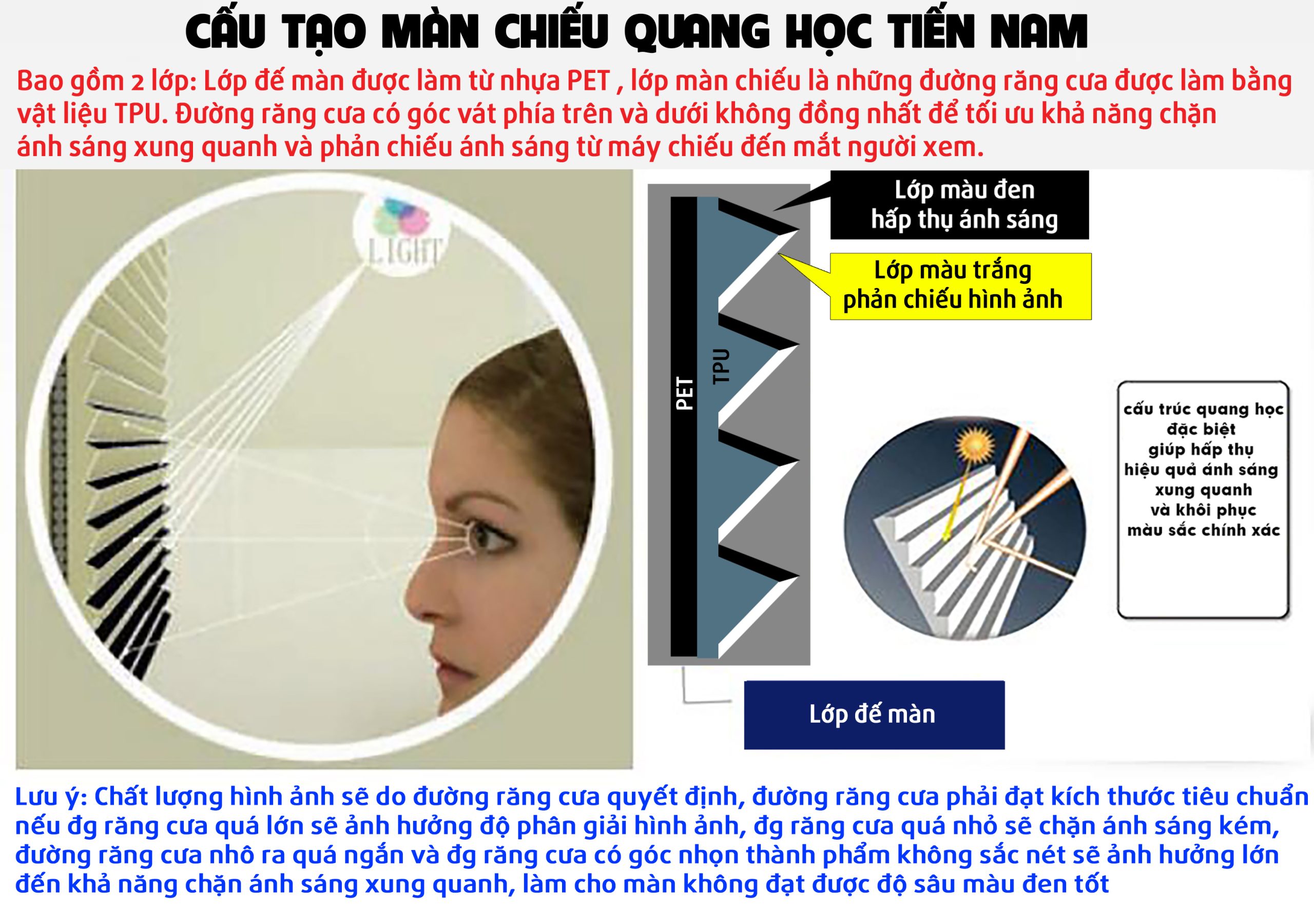 - Vật liệu màn quang học có rất nhiều nhà máy sản xuất, mỗi nhà máy cho ra những loại vật liệu có chất lượng khác nhau. Vật liệu quang học Tiến Nam được lựa chọn rất kỹ từ nhà máy Đài Loan